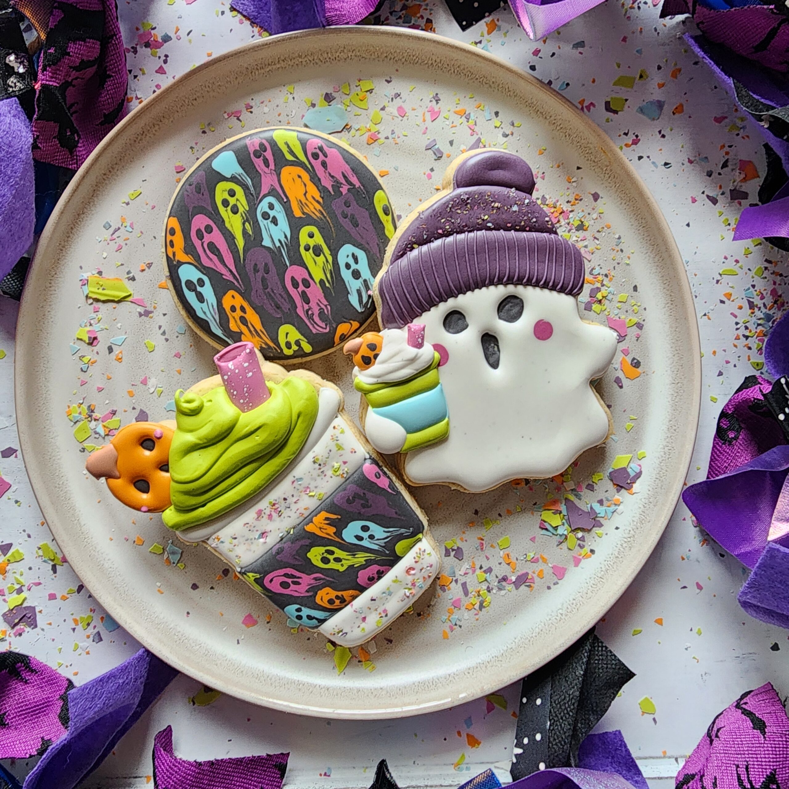 In this class you will learn to decorate the 3 (2 of each) cookies pictured in the class photo
